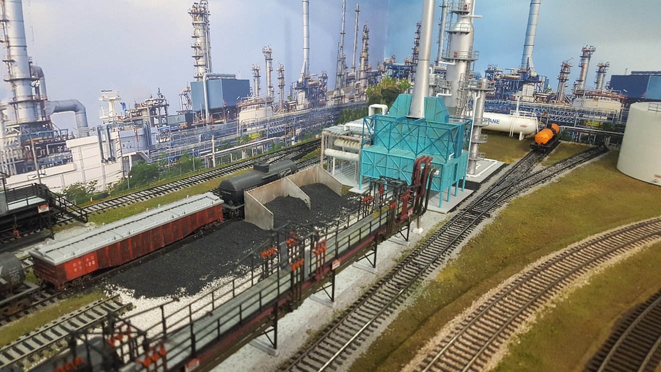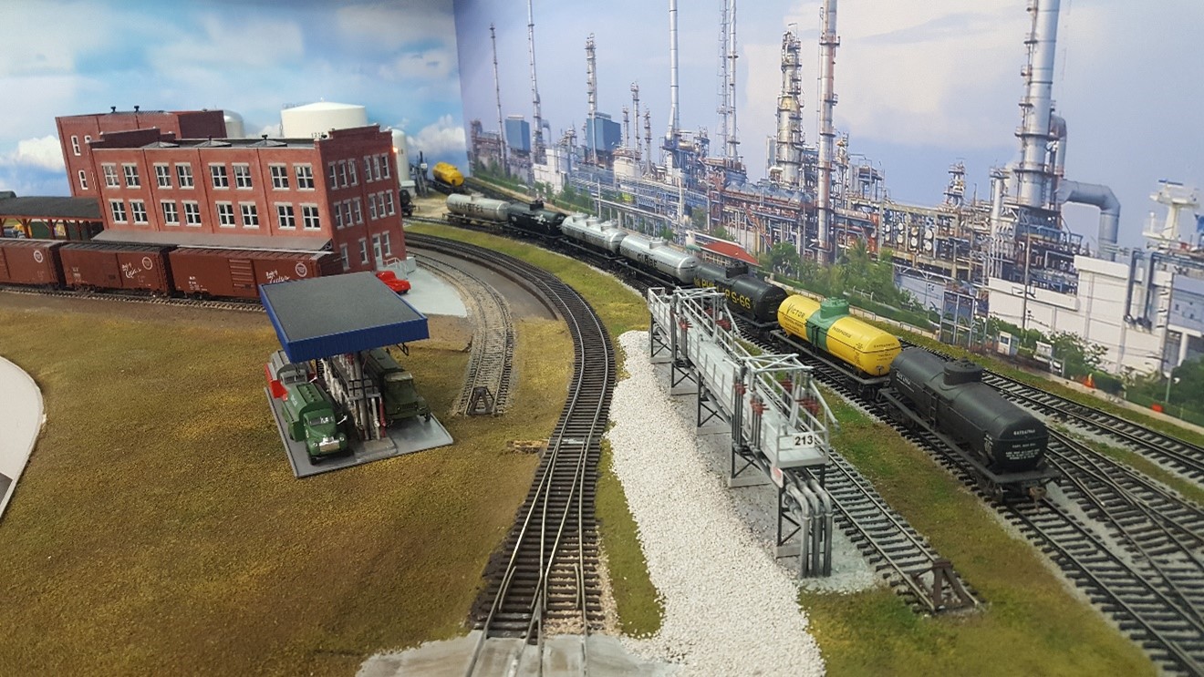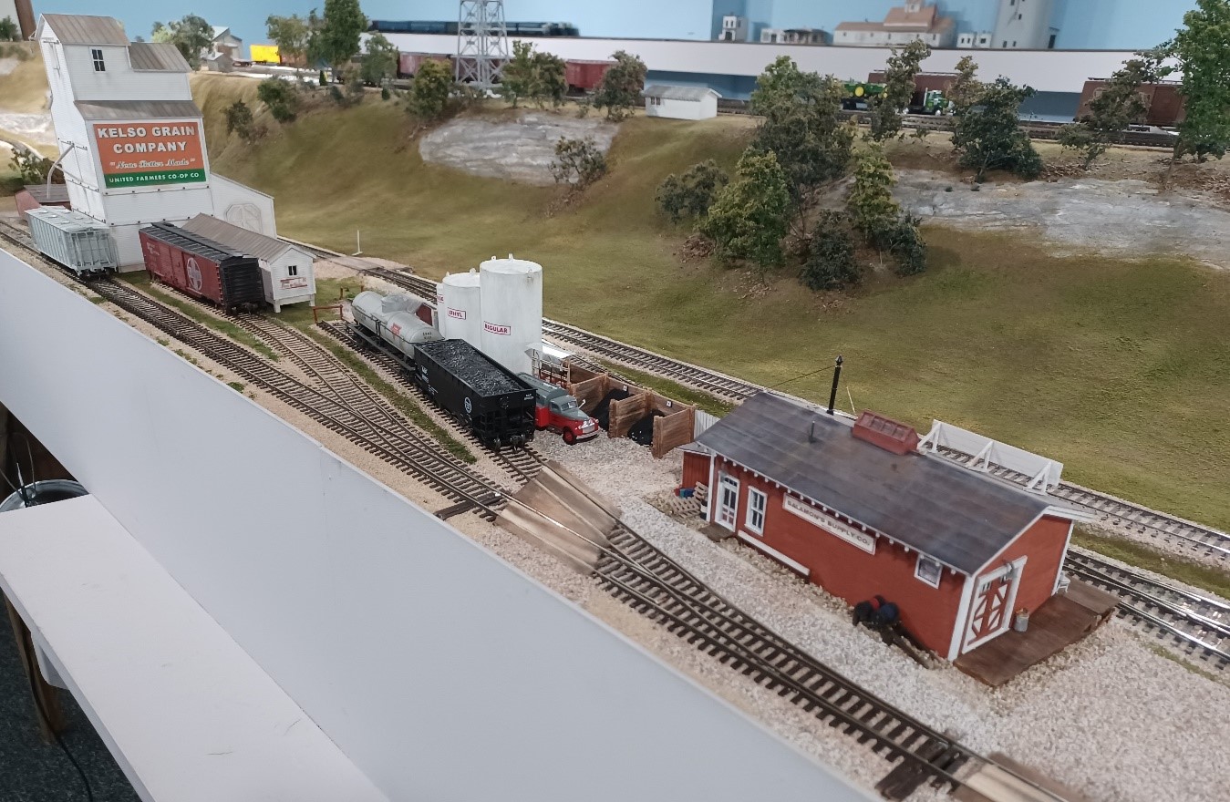 The Coffeyville Sub requires five operators and a dispatcher. 2 to work the small south yard, 1 to work the refinery, 2 road crews to run freight, locals, and passenger trains. JMRI is used to build manifests and switch lists. The trains run on a relaxed ordered schedule with train orders printed at the top of the wheel report. Signals are not installed yet at this time. We use CVP Products Easy DCC with wireless and tethered throttles. All turnouts have decoders and use push buttons for control, there are no ground throws on the layout.